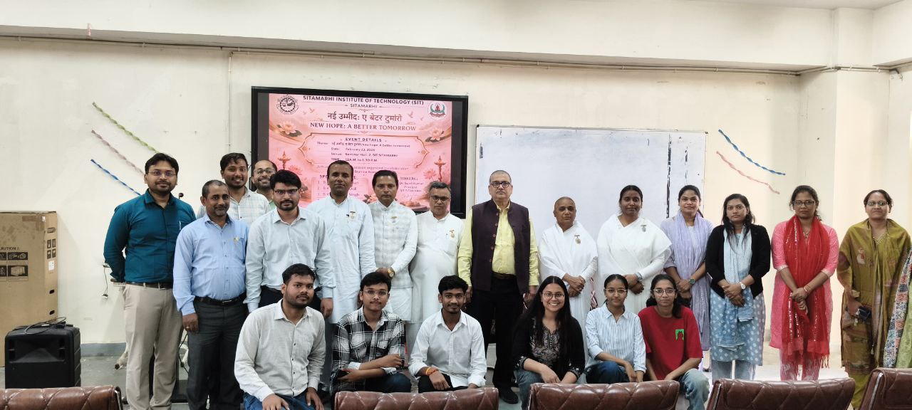 सीतामढ़ी, 23 फरवरी, 2026: विज्ञान, प्रावैधिकी एवं तकनीकी शिक्षा विभाग, बिहार सरकार तथा ब्रह्मा कुमारी के संयुक्त तत्वावधान में सीतामढ़ी इंस्टीट्यूट ऑफ टेक्नोलॉजी (SIT) के सेमिनार हॉल-2 में ‘नई उम्मीद – ए बेटर टुमारो’ विषय पर एक दिवसीय कार्यशाला का सफल आयोजन किया गया।