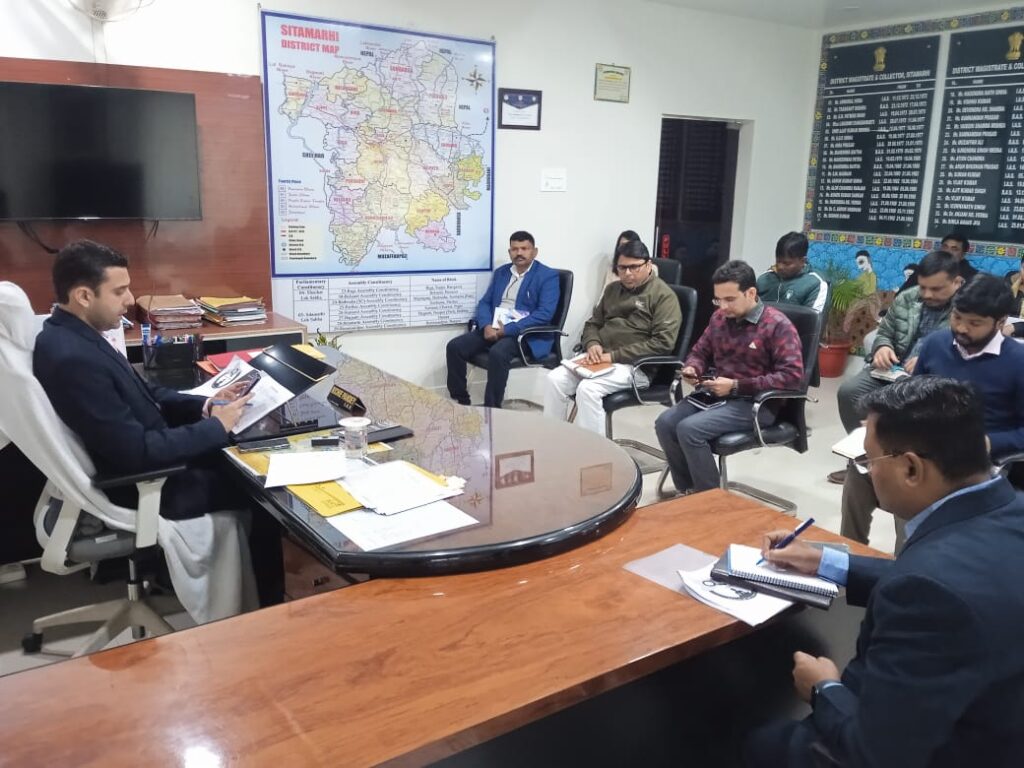 सीतामढ़ी जिले के प्रशासनिक कार्यों को और अधिक प्रभावी बनाने के उद्देश्य से जिलाधिकारी श्री रिची पांडे की अध्यक्षता में एक महत्वपूर्ण समीक्षात्मक बैठक आयोजित की गई। यह बैठक उनके कार्यालय कक्ष में आयोजित हुई, जिसमें राजस्व संबंधित कार्यों की प्रगति और उसमें सुधार के लिए आवश्यक निर्देश दिए गए। बैठक में एडीएम (राजस्व) श्री संदीप कुमार, डीसीएलआर सदर, डीसीएलआर पुपरी, सभी अंचलाधिकारी और राजस्व अधिकारी उपस्थित थे।