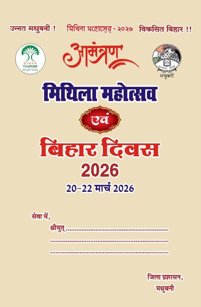 मिथिला महोत्सव 2026 में सभी मीडिया प्रतिनिधि सादर आमंत्रित है।