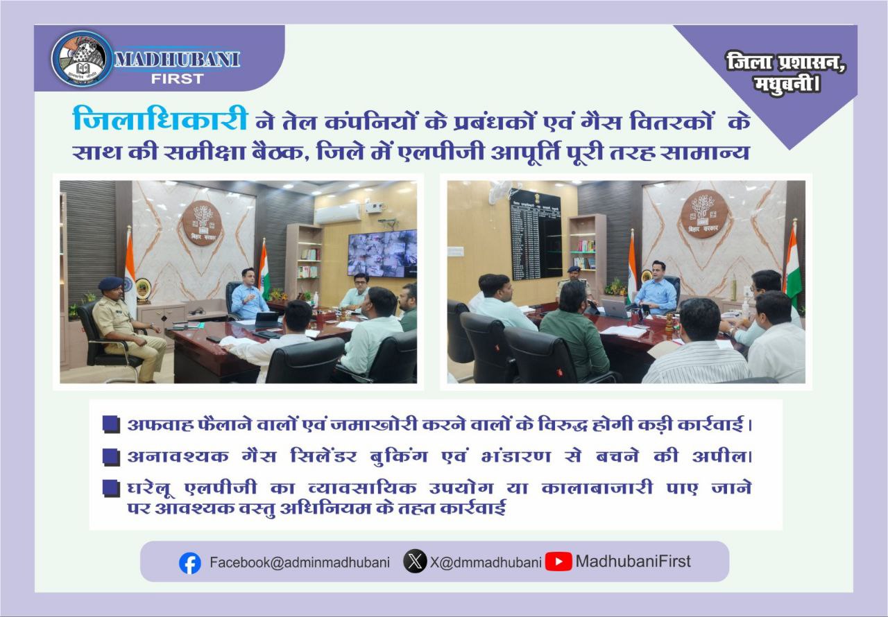 जिले में एलपीजी गैस की आपूर्ति पूरी तरह सामान्य है। घबराने या अतिरिक्त सिलेंडर बुक करने की कोई आवश्यकता नहीं ।