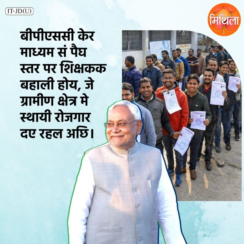 [11/02, 3:26 pm] +91 70508 16700: बीपीएससी केर माध्यम सं पैघ स्तर पर शिक्षकक बहाली होय, जे ग्रामीण क्षेत्र मे स्थायी रोजगार दए रहल अछि।