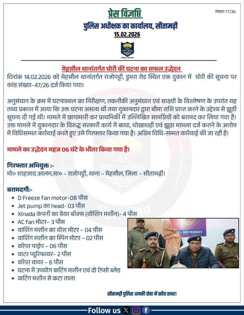 सीतामढ़ी पुलिस — हर कदम पर मुस्तैद।