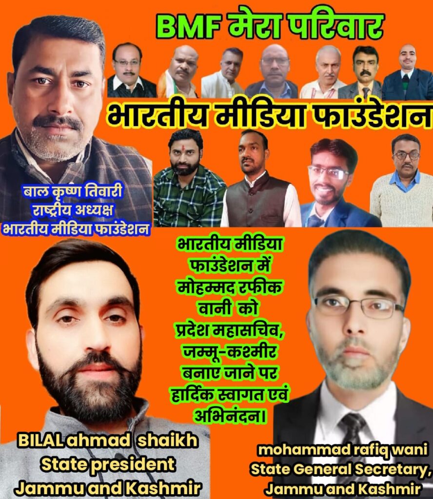 भारतीय मीडिया फाउंडेशन के समस्त मीडिया अधिकारियों और पदाधिकारियों ने मोहम्मद रफीक वानी सहित अन्य नए नियुक्त पदाधिकारियों को बधाई दी है। संगठन के सभी सदस्यों ने यह आश्वासन दिया है कि वे अपनी जिम्मेदारियों को पूरी निष्ठा और ईमानदारी के साथ निभाएंगे।