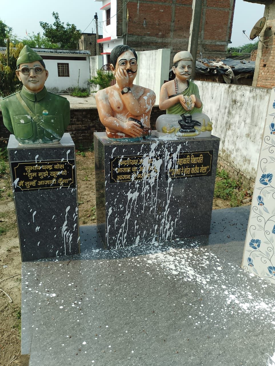इस स्मारक पर देश की आजादी मे अग्रणी भूमिका निभाकर नेतृत्व प्रदान करने वाले नेताजी सुभाष चन्द्र बोस जी ,चन्द्रशेखर आजाद जी एवं बाबा विद्यापति जी के संगमरमर की मूर्ती जयपुर से बनवाकर लगाया गया है जहाँ दिनांक 22 मार्च को रात्री में असामाजिक तत्वों द्वारा राष्ट्रद्रोही कार्य किया गया है जो स्मारक और महापुरुषों के ऊपर उजला पेंट डालकर यह अपराध अक्षम्य है जिसे माफ नहीं किया जा सकता है, इस राष्ट्र विरोधी कुकृत्य के लिए सख्त से सख्त कारवाई होनी चाहिए ऐसा निवेदन है सुनील कुमार सुमन जी के द्वारा जिन्होंने यह स्मारक सामाजिक सहयोग से अपने पारिवारिक निजी जमीन पर बनवाया हुआ है।