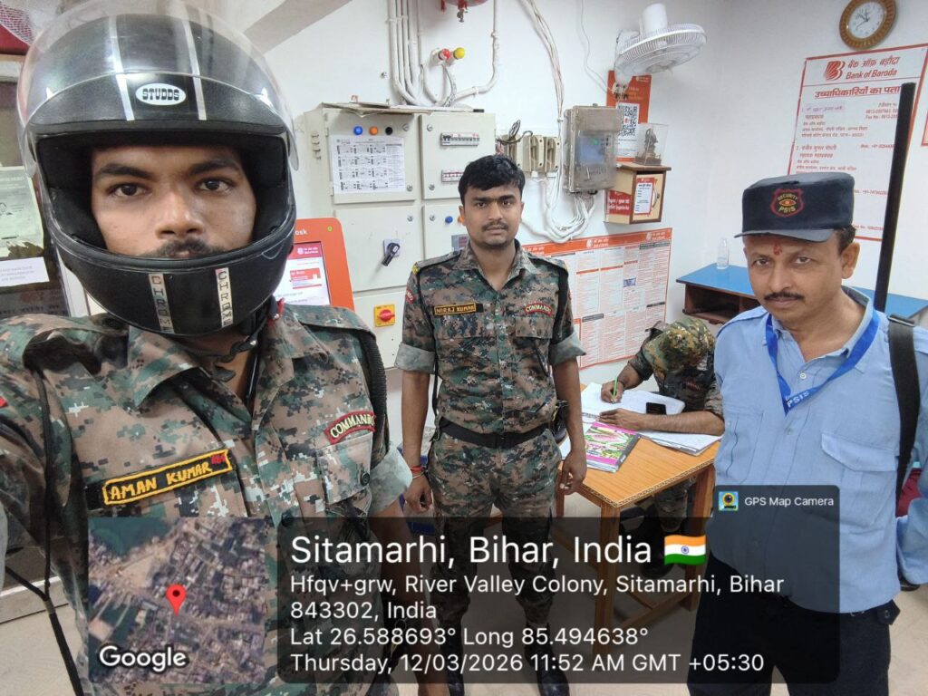 [12/03, 12:32 pm] +91 91990 97465: पुलिस अधीक्षक, सीतामढ़ी के निर्देशानुसार टाइगर गश्ती दल द्वारा बैंकिंग प्रतिष्ठानों /ATM एवं अन्य महत्वपूर्ण जगहों पर सुरक्षा-व्यवस्था सुनिश्चित करने हेतु विशेष सुरक्षा जांच की जा रही है।