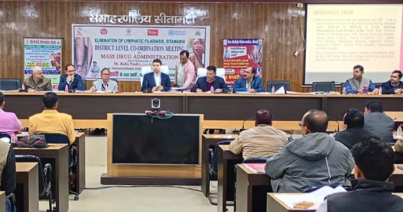 सीतामढ़ी जिले में फाइलेरिया नियंत्रण के उद्देश्य से आगामी 10 फरवरी 2026 से शुरू होने वाले “सर्वजन दवा सेवन कार्यक्रम” को लेकर जिला पदाधिकारी रिची पाण्डेय की अध्यक्षता में अध्यक्षता में समन्यव समिति की बैठक आयोजित की गई। बैठक में जिले के विभिन्न विभागों के पदाधिकारी एवं सहयोगी संस्थाओं के प्रतिनिधि उपस्थित रहे।
