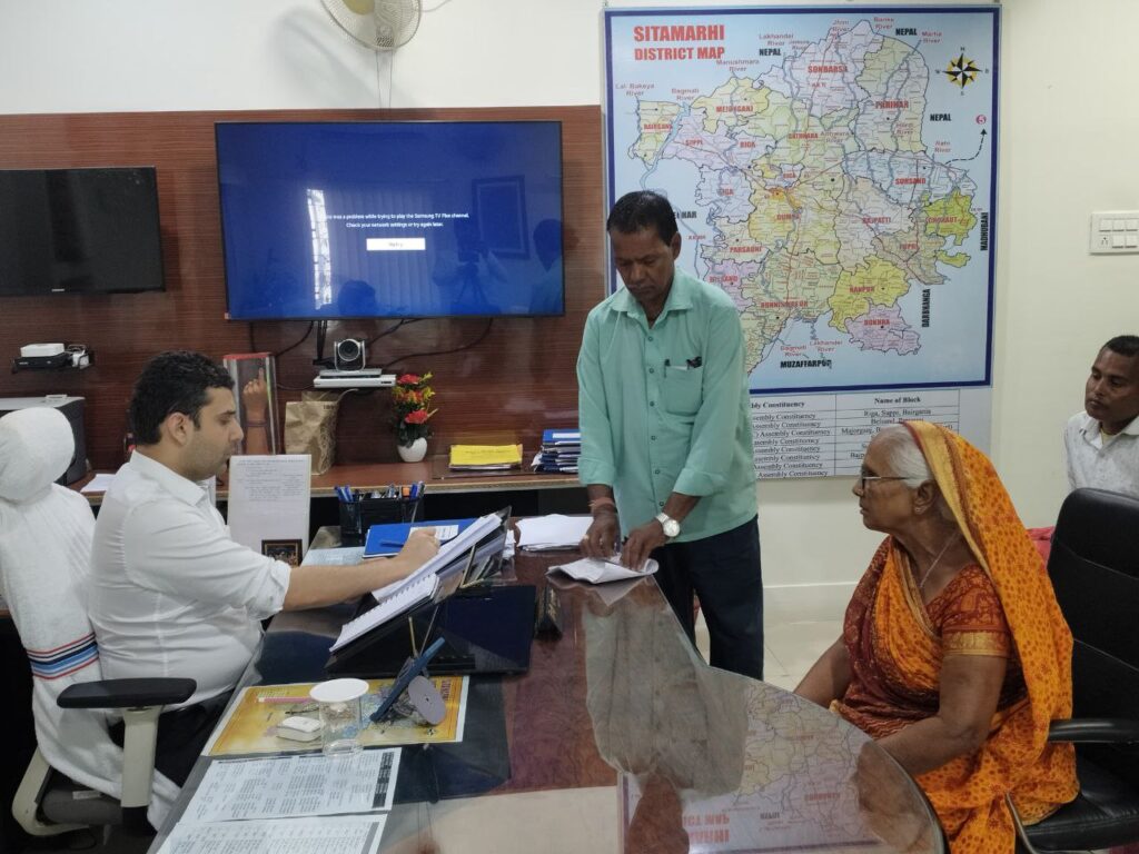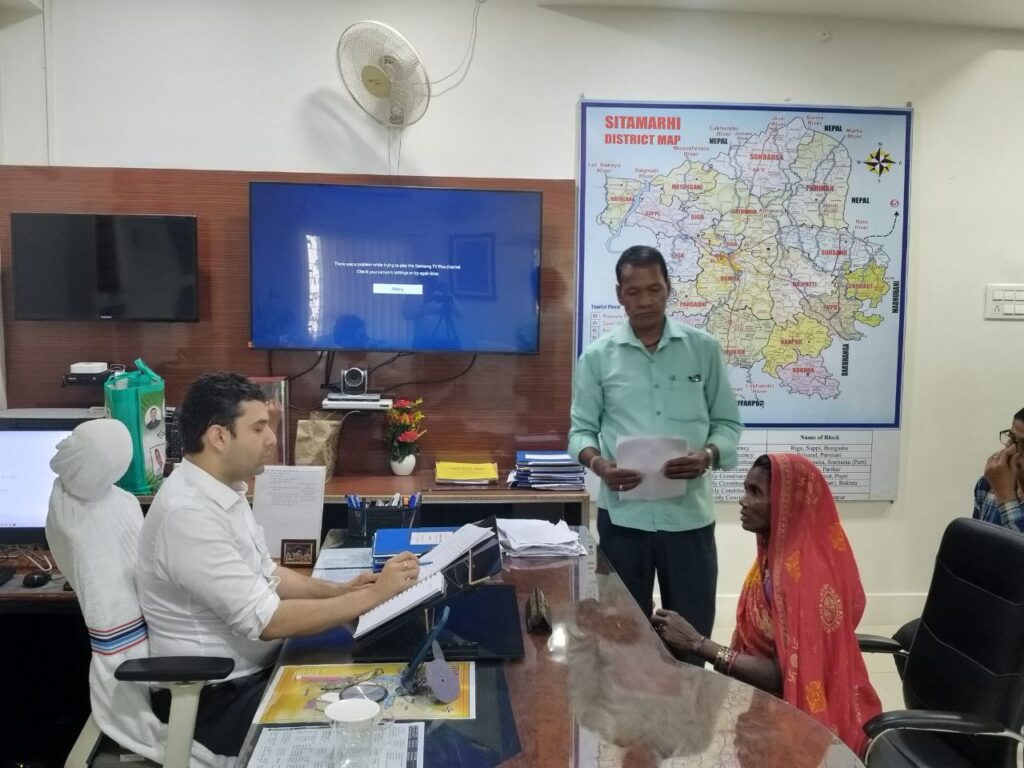 बिहार सरकार के महत्वाकांक्षी कार्यक्रम ’’सात निश्चय-3’’ अंतर्गत सातवें निश्चय सबका सम्मान-जीवन आसान के तहत आज समाहरणालय स्थित अपने कार्यालय कक्ष में जिला पदाधिकारी श्री रिची पांडेय ने आमजनों की समस्याओं को गंभीरता एवं संवेदनशीलता के साथ सुना। इस अवसर पर विभिन्न क्षेत्रों से आए नागरिकों ने अपनी शिकायतें सीधे जिलाधिकारी के समक्ष रखीं जहां परिवादों को सुना गया एवं उसके समाधान की दिशा में आवश्यक कदम उठाए गए।