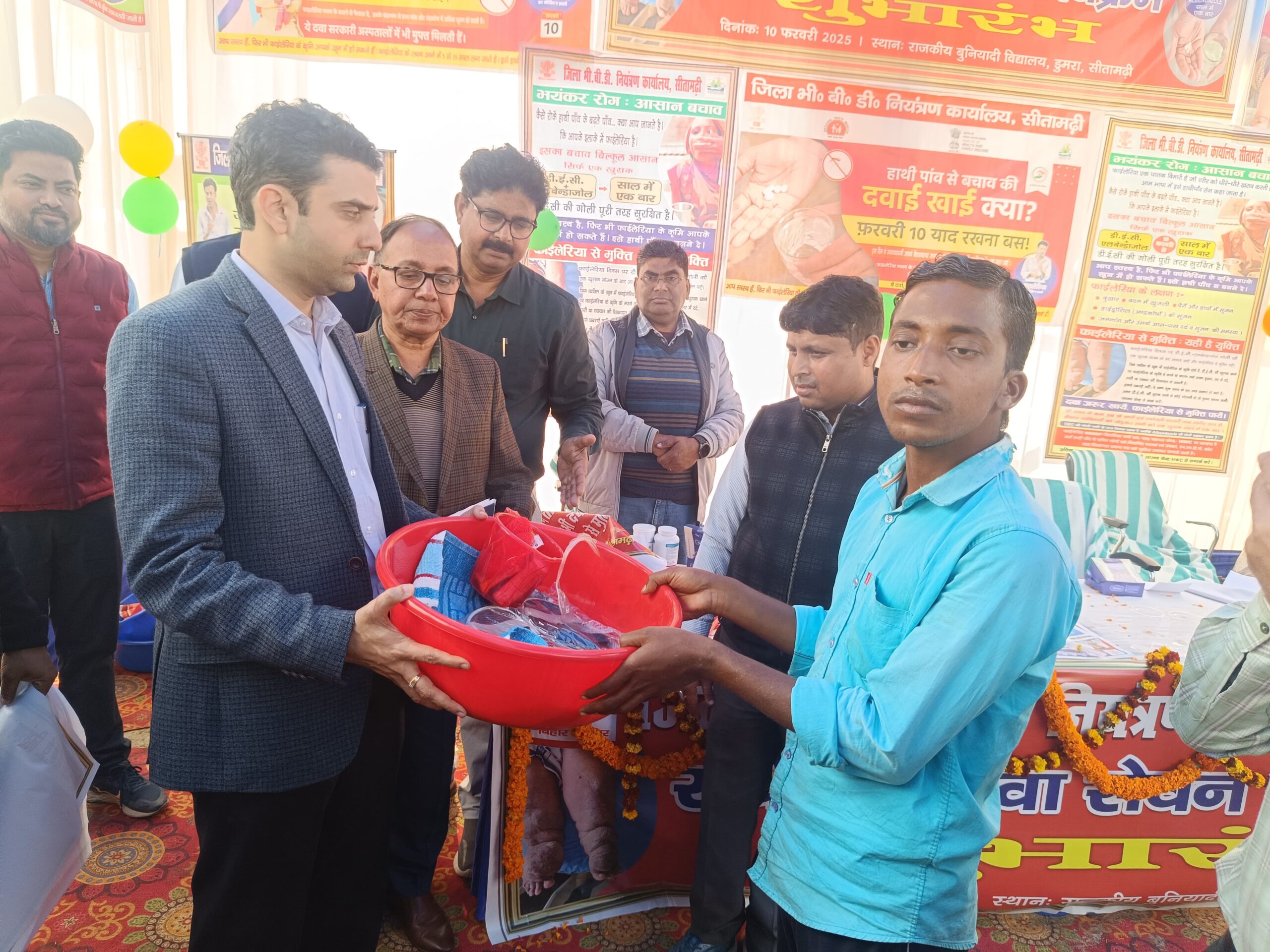 कार्यक्रम के समापन के समय जिला पदाधिकारी श्री रिची पांडेय ने फाइलेरिया से ग्रसित मरीजों को एम एम डी पी कीट (Mass Drug Administration Package) वितरित किए। इस कीट में वह सभी आवश्यक दवाइयां और सामग्री शामिल हैं, जो फाइलेरिया के इलाज में सहायक होती हैं।
