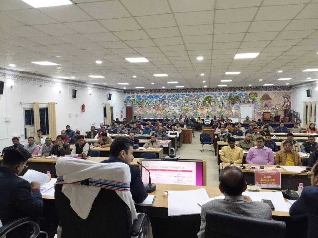 समाहरणालय स्थित परिचर्चा भवन में जिलाधिकारी सीतामढ़ी श्री रिची पांडेय की अध्यक्षता में वाइब्रेंट विलेज प्रोग्राम के क्रियान्वयन को लेकर समीक्षात्मक बैठक की गई। जिलाधिकारी ने सीमावर्ती गांवों के समग्र विकास के लिए चलाई जा रही इस महत्वाकांक्षी योजना के क्रियान्वयन को लेकर आवश्यक निर्देश दिया।उन्होंने सभी अधिकारियों को कहा कि संबंधित विभाग इस संबंध में अपना डीपीआर बनाकर शीघ्र प्रस्तुत करें। मालूम हो कि सीतामढ़ी जिले में इस प्रोग्राम के तहत 09 गांवों का चयन किया गया है। इस दौरान जिलाधिकारी ने सड़क संपर्क ,पेयजल ,बिजली, स्वास्थ्य, शिक्षा, आजीविका का सृजन से संबंधित परियोजनाओं पर प्राथमिकता के आधार पर कार्य करने के निर्देश दिए। जिलाधिकारी ने जोर दिया कि वाइब्रेट विलेज एक्शन प्लान के तहत सभी विकास कार्यों को आपसी समन्वय से किया जाए ताकि संसाधनों का उचित रहेगा उपयोग सुनिश्चित हो सके ।उन्हें बताया कि सीमांत गांव अपनी प्राकृतिक सुंदरता, जीवन शैली और संस्कृति के लिए महत्वपूर्ण है ।वाइब्रेट विलेज प्रोग्राम का उद्देश्य इन सीमावर्ती गांवों में आधारभूत ढांचे को मजबूत करना ,उन्हें विकास की मुख्य धारा से जोड़ना और सकारात्मक बदलाव लाना है।