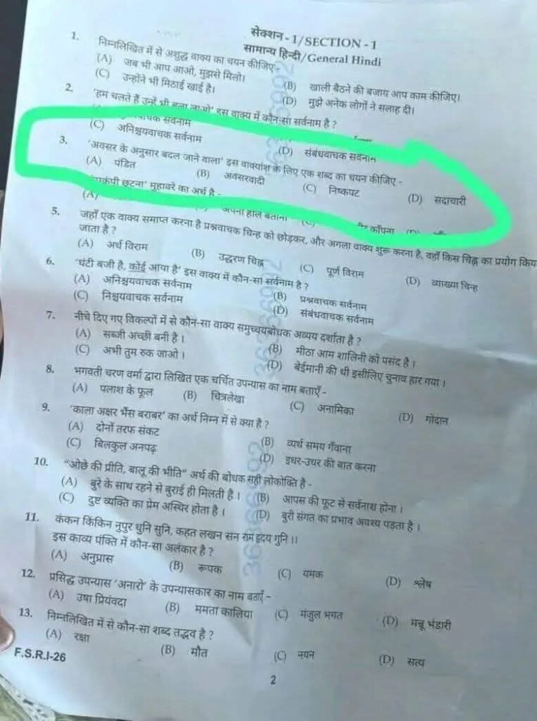सादर निवेदन है कि दिनांक 14 मार्च 2026 को आयोजित उत्तर प्रदेश पुलिस सब-इंस्पेक्टर (SI) भर्ती परीक्षा के हिंदी खंड में एक अत्यंत आपत्तिजनक एवं संवेदनशील प्रश्न पूछा गया।