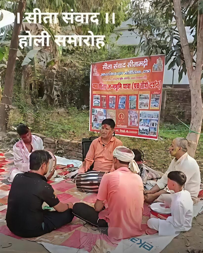 होली रंगों का उत्सव है।सीता संवाद आध्यात्मिक एवं साहित्यिक यात्रा कार्यालय बसबरिया वार्ड 25 राइस मिल कैंपस में परंपरागत होली गीत का गायन साथियों बालकों अभिभावकों के साथ गाया गया।सीता संवाद निदेशक आग्नेय कुमार के नेतृत्व में परंपरागत होली गीतों का गायन ढोलक झाल मृदंग डंफ़ नाल संग हुए।पाहुन राम और बहिन जानकी संग होली मिथिला की पवित्र हुई है।माता सीता जन्मभूमि पर होली उत्सव बड़े धूमधाम से मनाया जाता है।जानकी नवमी की तैयारी में सनातनी जुट जाते है।होली रंगों का त्यौहार है जो प्रेम समरसता का प्रतीक है ।इसी क्रम में होली की परंपरागत गीत का गायन सबने मिलकर किया।मिथिला में राम खेले होली ,कनक महल में सिया संग राम खेले होली,बाबा हरिहरनाथ सोनपुर में खेले होली,यमुना तट राम खेले होली,खेले मसाने में होली दिगंबर खेले मसाने में होली,बंधन बंधन बंधन दुर्गा महारानी के बंधन,शिव मठ पर लाल ध्वजा फहरे,आज ब्रज में होली रे रसिया, रंग लेके दौड़े हनुमान जी राम जी उठ के भागे जैसे कई गीतों का गायन हुआ।