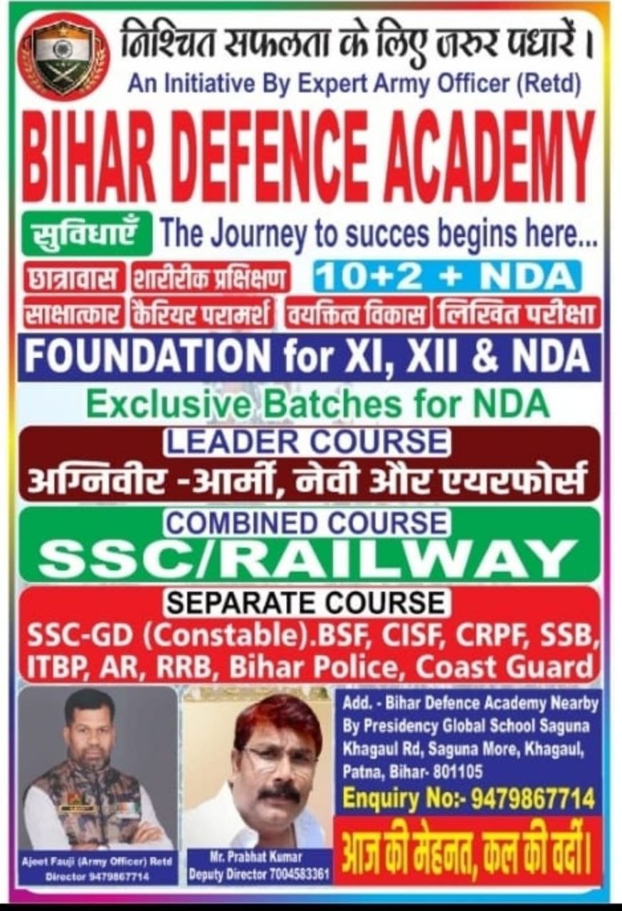 [11/04, 8:59 pm] Rajeev Kumar Bangav: Bihar Defence Academy Danapur Patna (Bihar)